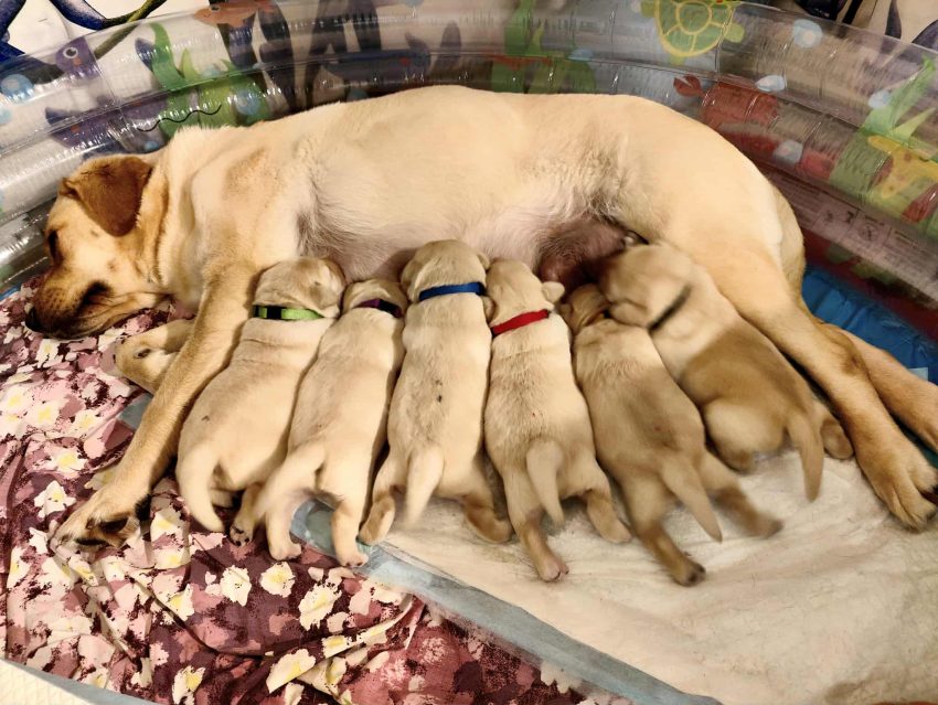 Allyn ja Noah’n keltaiset pennut, 4 poikaa ja 2 tyttöä, voivat erinomaisesti. Kaikille tytöille on koti tiedossa. Mahdollisesti yksi poika etsii näyttelyistä / noutajalajeista kiinnostunutta kotia. Yhteydenotto: kati@magicmelliers.fi